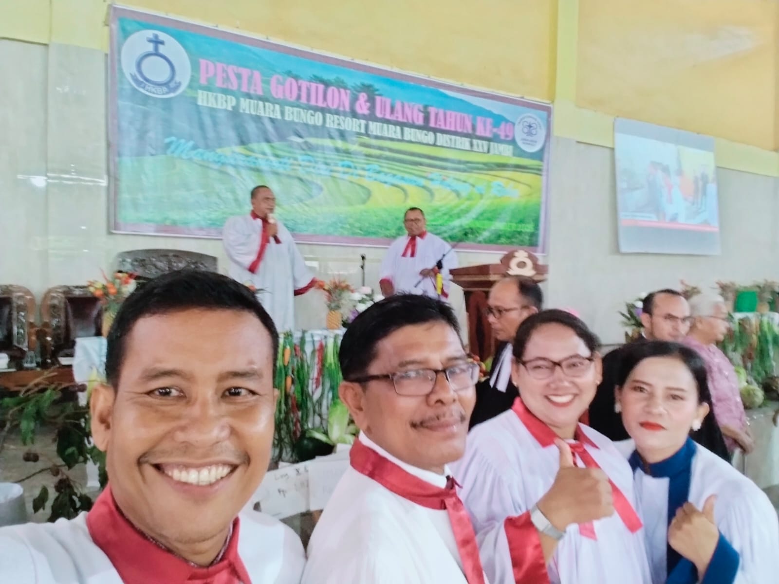 Usai ibadah, pesta gotilon dengan thema Mangaramoti diri dibagasan holong ni roha, dilanjutkan dengan pemotongan kue ulangtahun ke 49 HKBP Muara Bungo. Juga tortor anak-anak sekolah minggu.