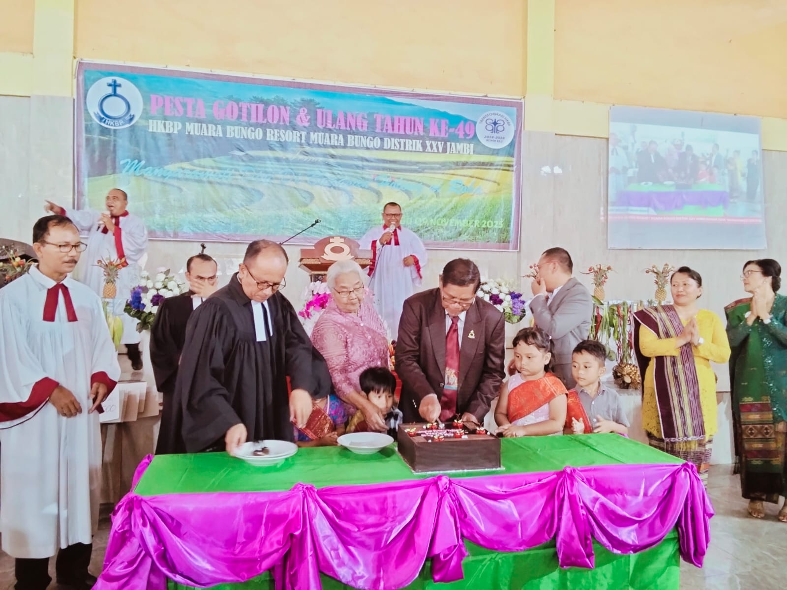 dutapers.com, BUNGO – Huria Kristen Batak Protestan (HKBP) Muara Bungo, Minggu (9/11) menggelar syukuran Pesta Gotilon. Bertempat di Sopo Godang HKBP, gelaran ini diawali dengan ibadah minggu yang dipimpin lansung Pendeta Resort HKBP Muara Bungo, Pdt J Sipahutar. Liturgis oleh Pdt JPH Purba dan pembaca warta jemaat Biv.N Manurung.